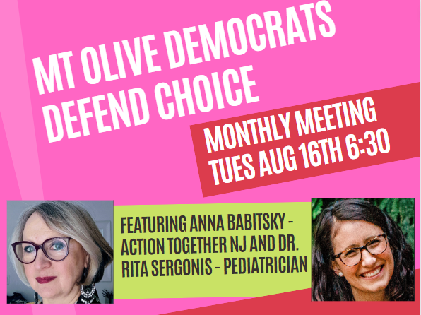 Mount Olive Democrats were pleased to welcome two guest speakers to our August Monthly Meeting….