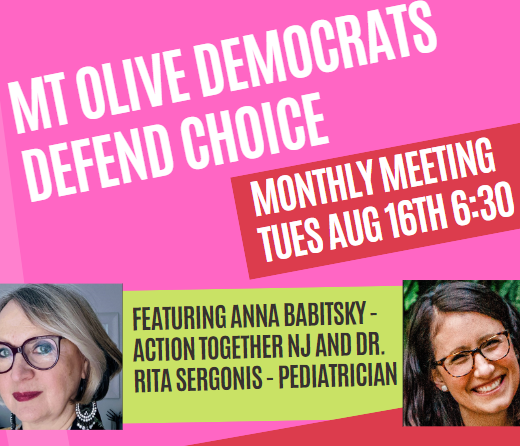 Mount Olive Democrats were pleased to welcome two guest speakers to our August Monthly Meeting. We heard about what is at stake …